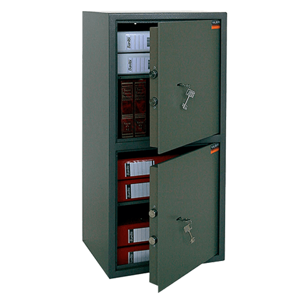- Два отделения одинакового размера с ключевыми замками в каждой дверце.