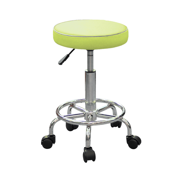- Имеет круглое сиденье с обивкой из искусственной кожи светло-зелёного цвета.