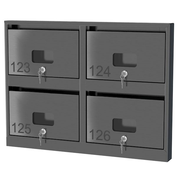 - Стильный тонкий почтовый ящик премиум-класса на четыре ячейки с окошком.