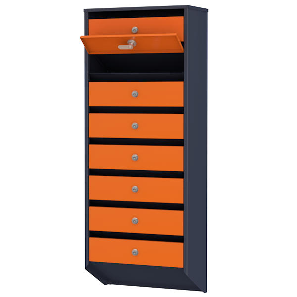 - Каждая дверца оснащена индивидуальным почтовым замочком.