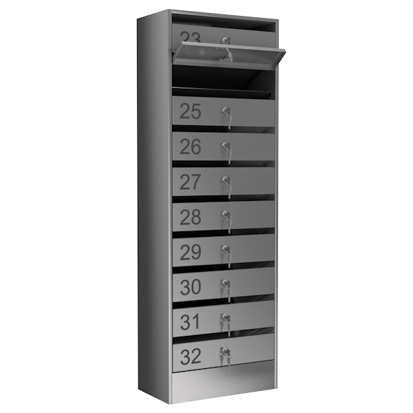- Каждая ячейка запирается на индивидуальный замок и комплектуется 2 ключами.