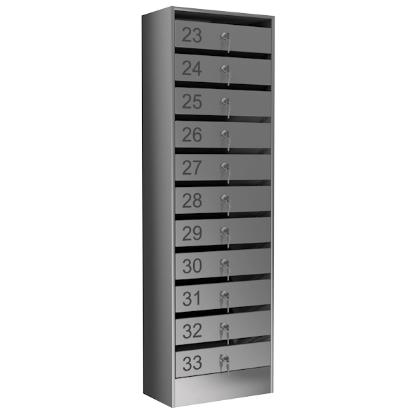 - Каждая ячейка запирается на индивидуальный замок и комплектуется 2 ключами.