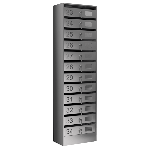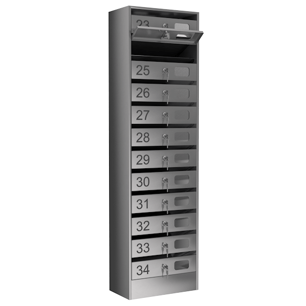 - Каждая ячейка оснащена индивидуальным замком и комплектуется 2 ключами.
