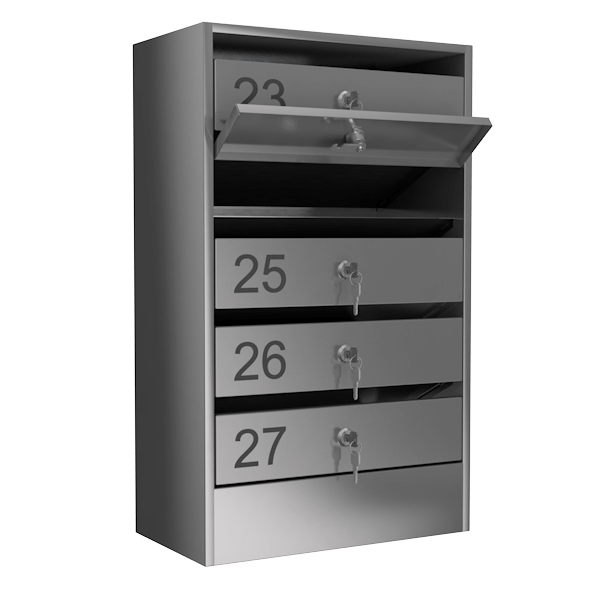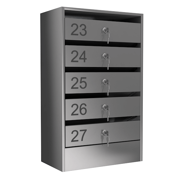- Почтовый ящик из нержавеющей стали, состоит из 5 ячеек и рассчитан на 5 квартир.