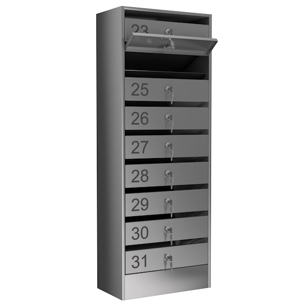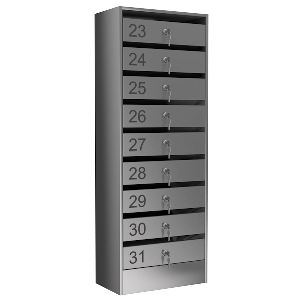 - Каждая ячейка запирается на индивидуальный замок и комплектуется 2 ключами.