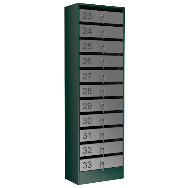 - Каждая закрывается на индивидуальный замок и комплектуется 2 ключами.