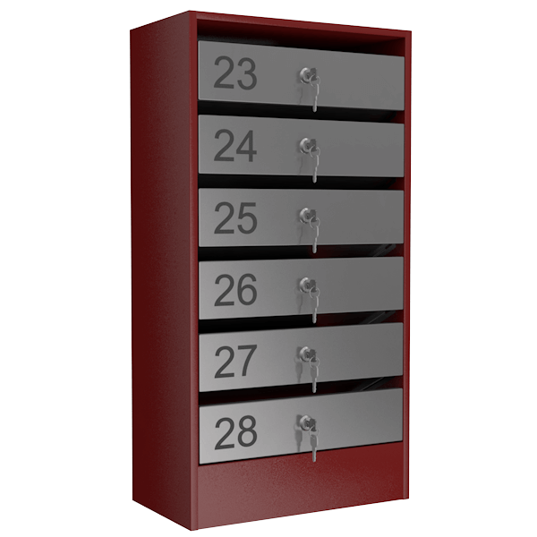 - Ящик почтовый из 6 ячеек для хранения корреспонденции, рассчитан на 6 квартир.