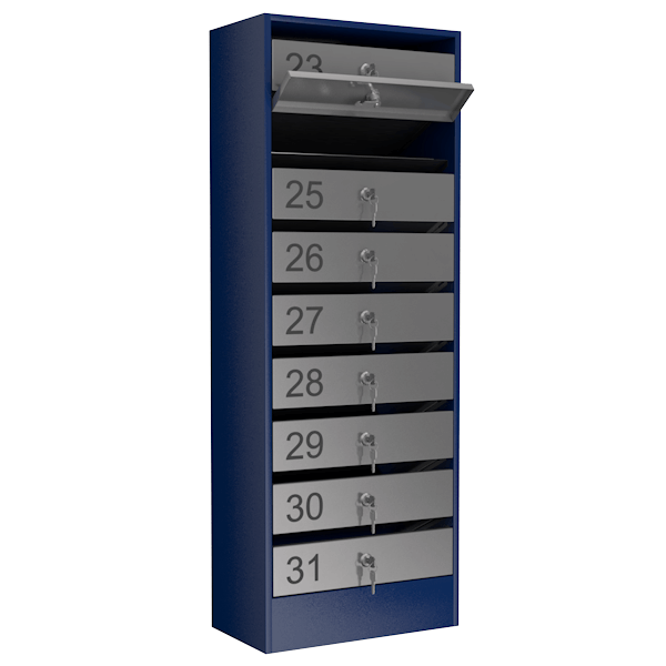- Каждая закрывается на индивидуальный замок и комплектуется 2 ключами.