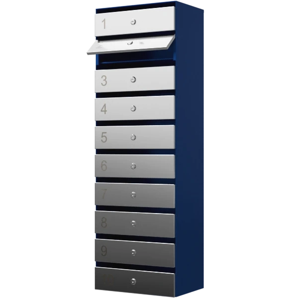 - Почтовый ящик состоит из 10 ячеек одинакового размера, предназначенных для индивидуального хранения корреспонденции.