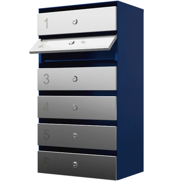 - Почтовый ящик состоит из шести отдельных ячеек, каждая оснащена индивидуальным ключевым замком.