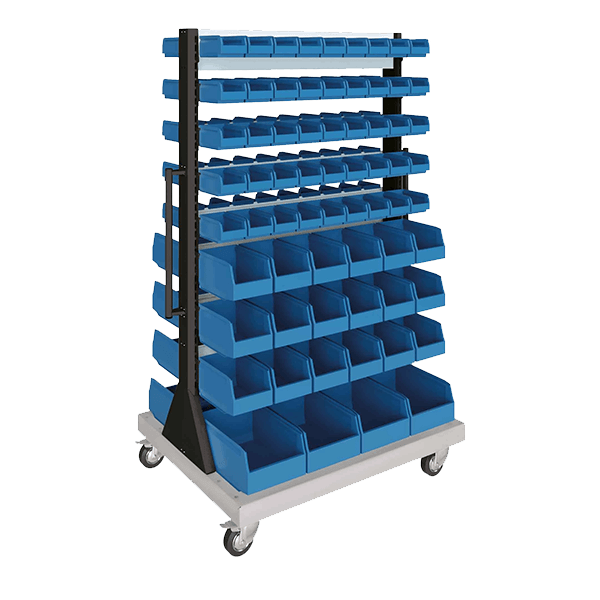 - Система держателей обеспечивает размещение пластиковых контейнеров на 9 ярусах с обеих сторон стойки.