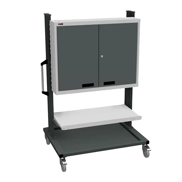 - Представляет собой сборную конструкцию, состоящую из регулируемой полки с дверцами и перфорированного ящика.