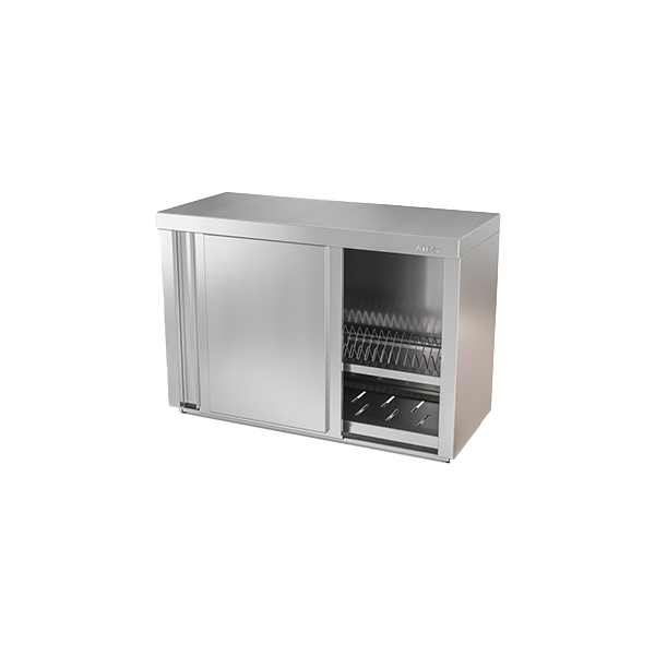 - Закрытая полка предназначена для хранения и естественной сушки стандартных суповых и десертных тарелок разных размеров, а также стаканов.