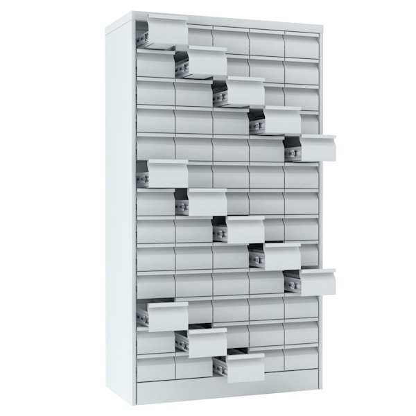 - Оснащён 65 выдвижными ящиками на телескопических направляющих.