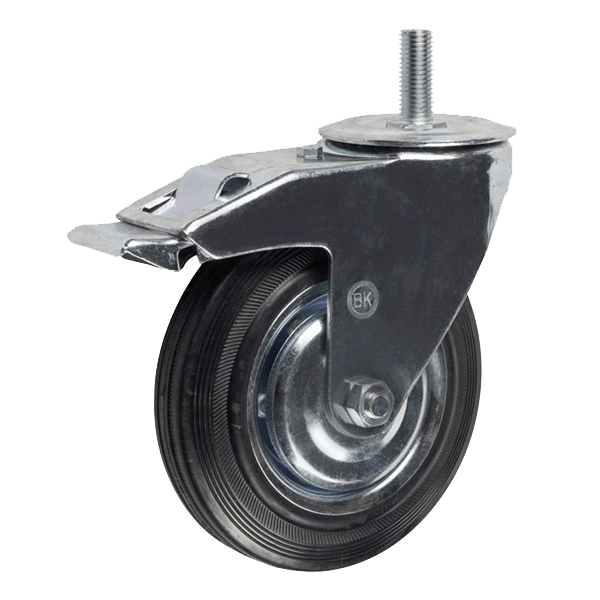 Колесо промышленное поворотное с тормозом (болтовое крепление) 200 мм