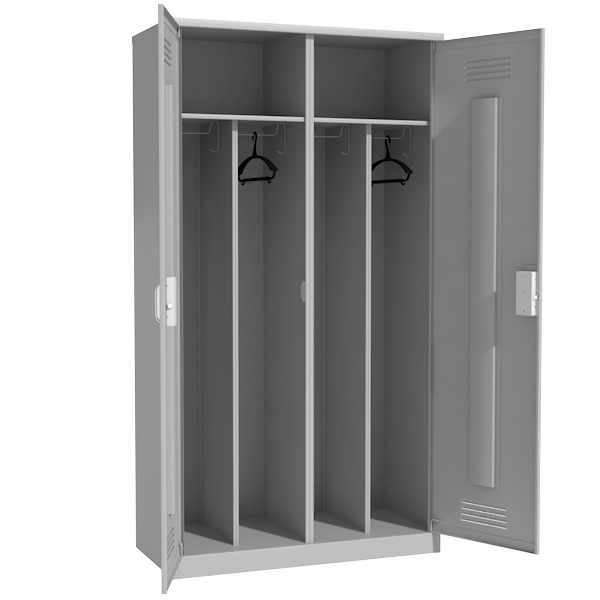 - Каждая секция разделена перегородкой на два отделения: под чистую и грязную одежду.