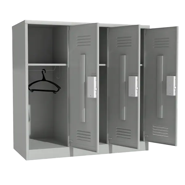 - Состоит из трёх одинаковых секций для хранения одежды, рассчитан на трёх человек.