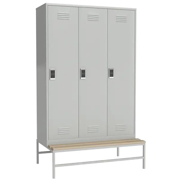 Шкаф металлический для хранения сменной одежды на подставке со скамьей и электронным замком