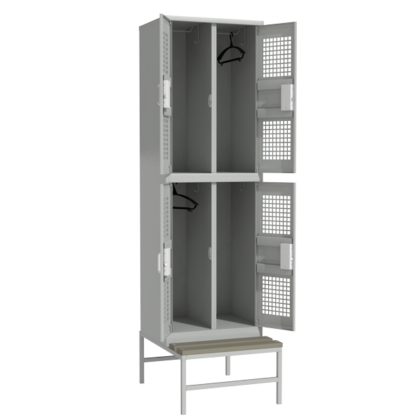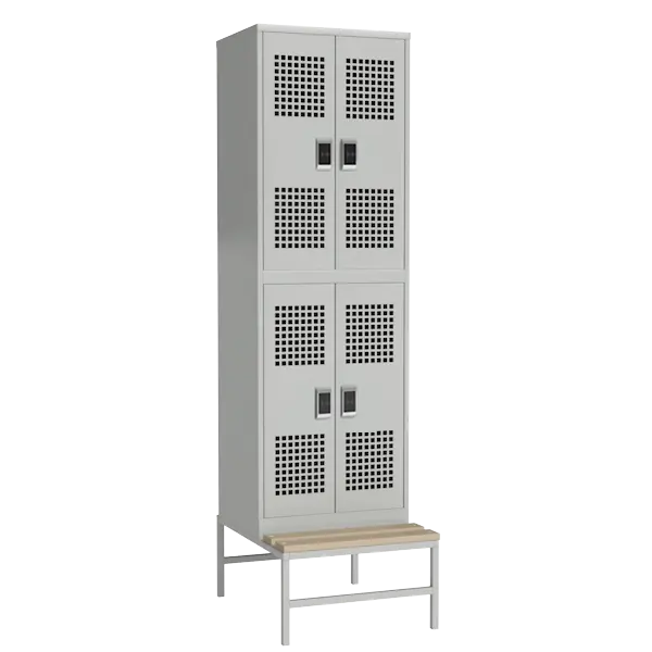 Сварной шкаф для одежды со скамьей на подставке с перфорированными дверцами и электронным замком