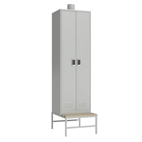 Цельносварной шкаф для одежды с вытяжкой на подставке со скамьей и электронным замком