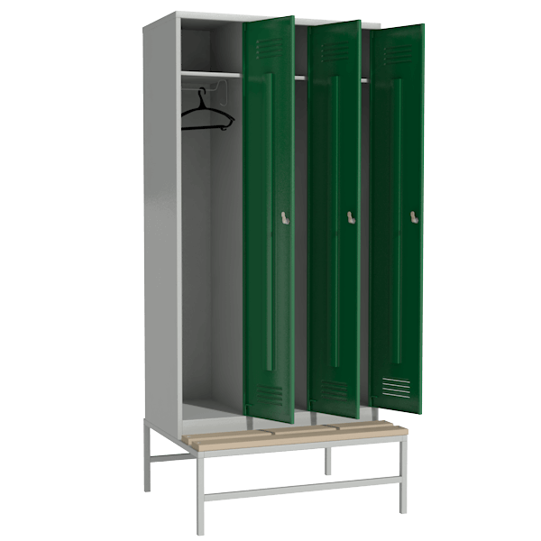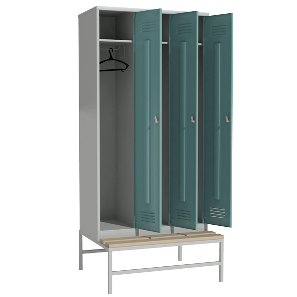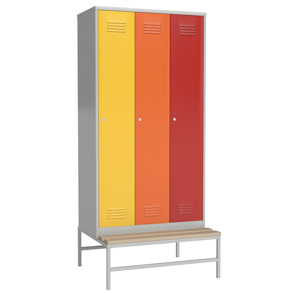 Цветной шкаф для одежды секционный сварной на подставке со скамьей