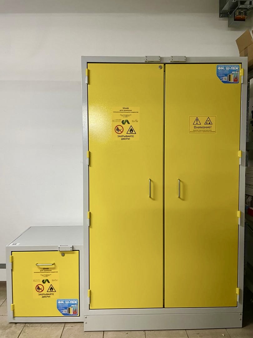 - Металлический шкаф для безопасного хранения ЛВЖ.