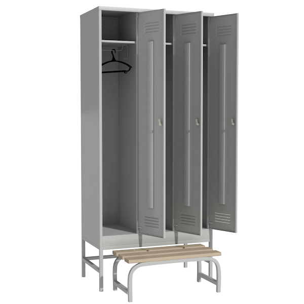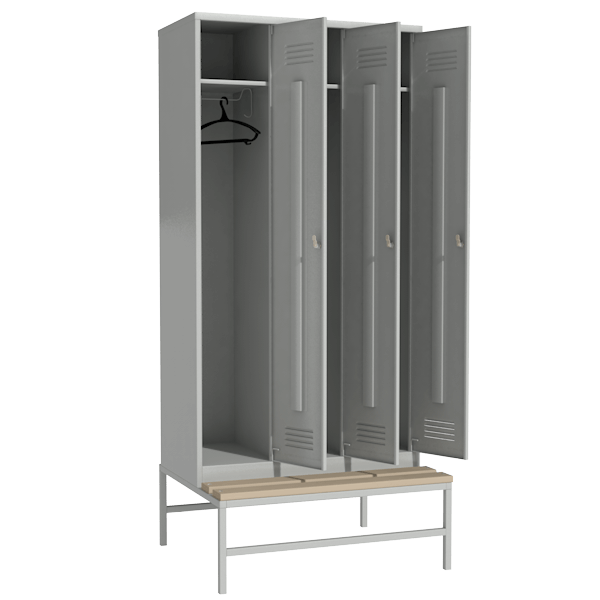 Металлический шкаф для одежды с замком на подставке со скамьей