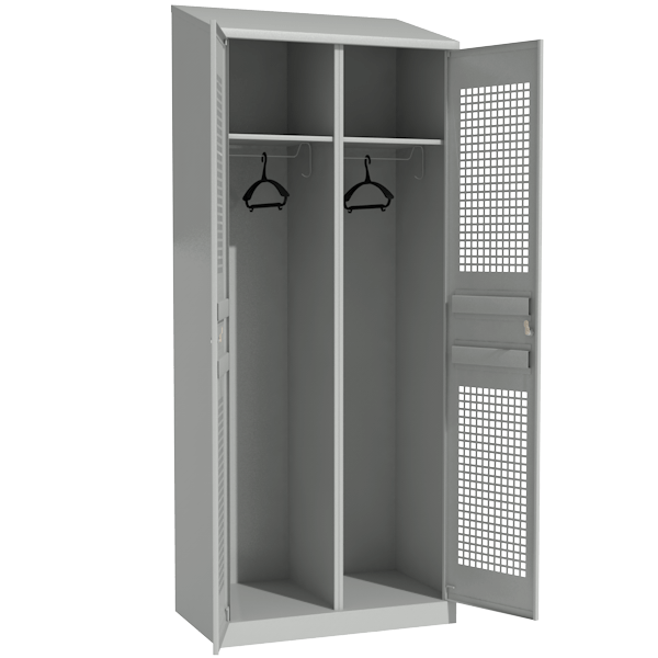 - Состоит из двух отделений, каждое отделение комплектуется полочкой для головного убора, перекладиной и крючками для одежды.