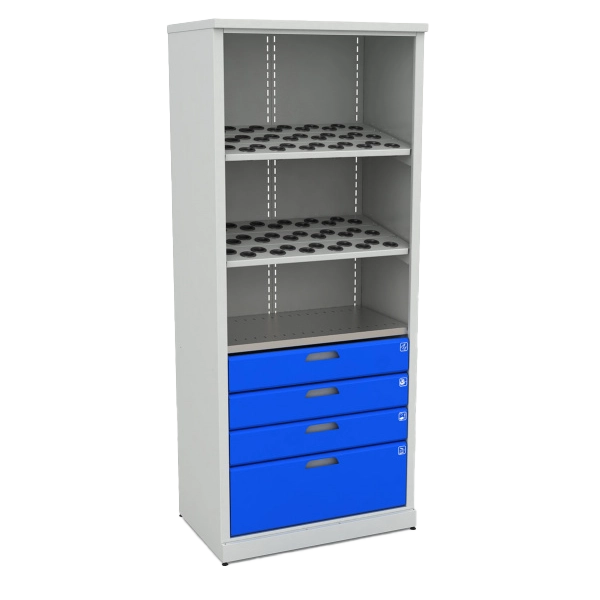 - Шкаф предназначен для безопасного и удобного хранения инструментов, используемых с ЧПУ станками, обеспечивая порядок и легкий доступ.