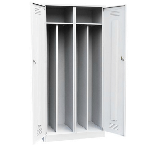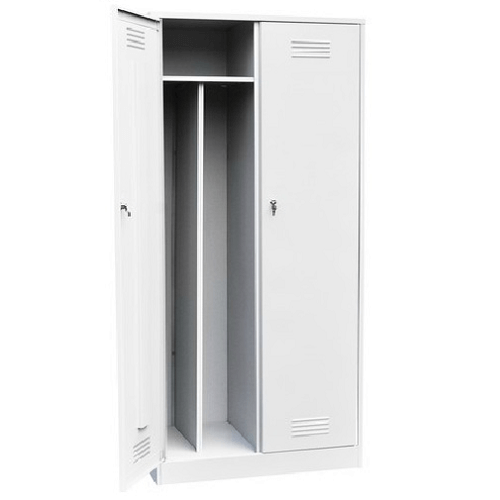 - Каждая секция разделена перегородкой на два отделения: под чистую и грязную одежду.