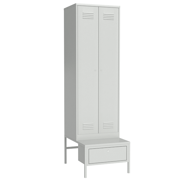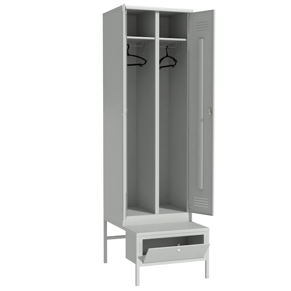 Металлический гардеробный шкаф для раздевалок на подставке с ящиком