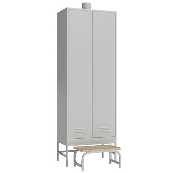 Шкаф металлический для одежды с вытяжкой и выдвижной скамьей