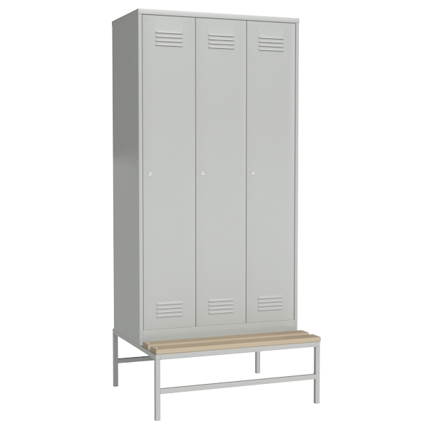 Шкаф в раздевалку для одежды с деревянной скамьей на подставке