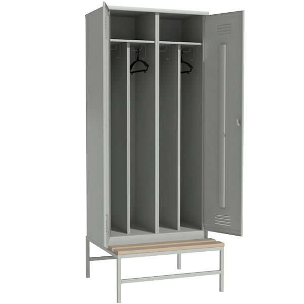 Шкаф на подставке со скамьей для раздевалки на 4 отделения