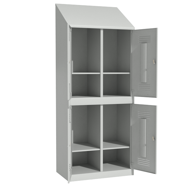Шкаф для раздевалок четырёхсекционный с наклонной крышей