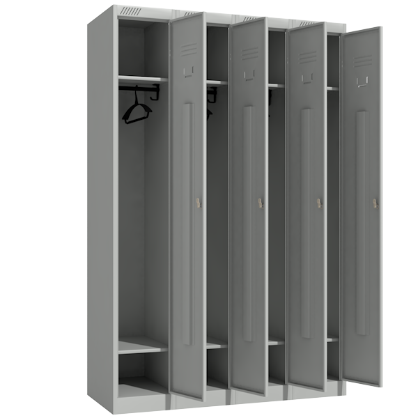 - Позволяет организовать место для переодевания для четырех человек. Может использоваться для переодевания рабочих и посетителей. Каждая дверца запирается на отдельный ключ, поэтому ваши сотрудники могут быть уверены в сохранности личных вещей.
