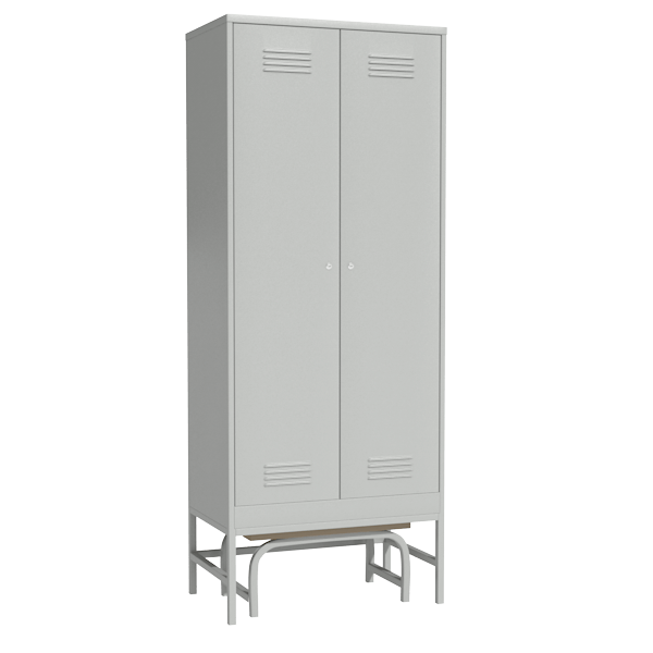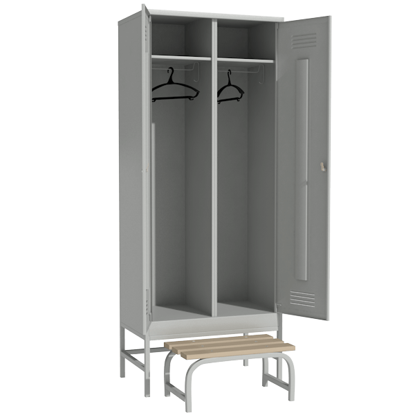 Шкаф двухсекционный для раздевалок с выдвижной скамьей
