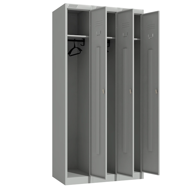 - Позволяет организовать место для переодевания для трех человек. Каждая дверца запирается на отдельный ключ, поэтому ваши сотрудники могут быть уверены в сохранности своих вещей.