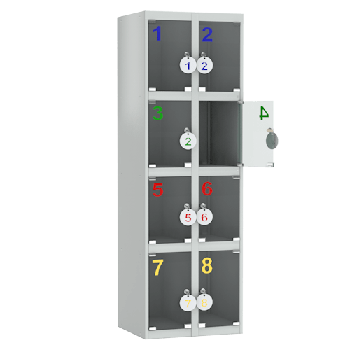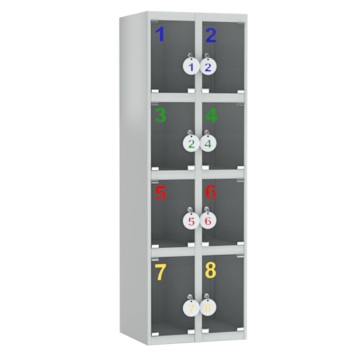 Шкаф для сумок на 8 ячеек с дверцами из оргстекла