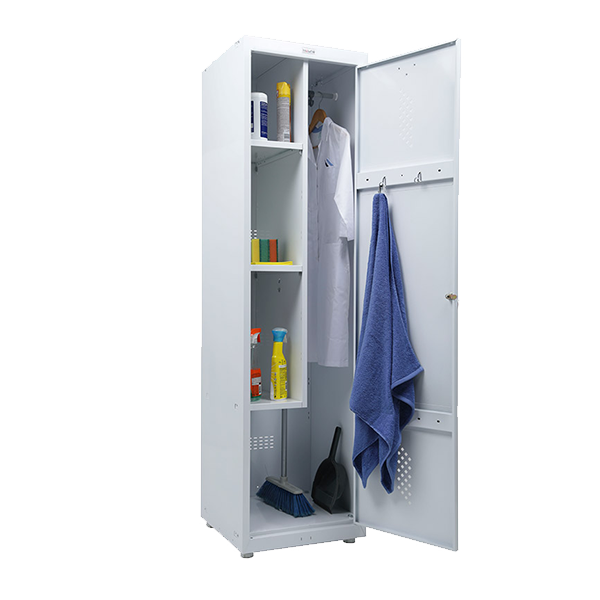 - Предназначен для хранения рабочей одежды и хозяйственного инвентаря в медицинских и других помещениях.