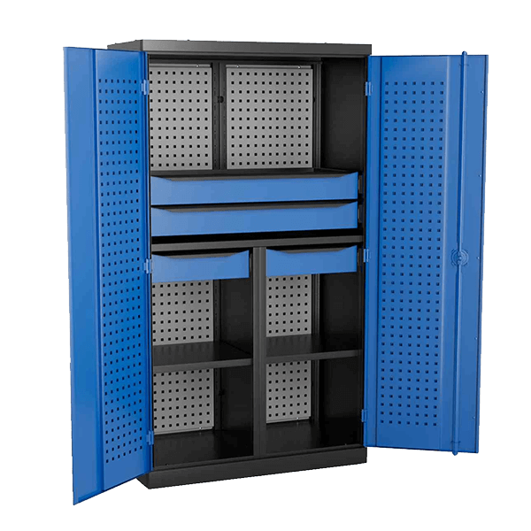 - Современный лаконичный дизайн и качественная порошковая окраска делают шкаф устойчивым к коррозии, царапинам и механическим повреждениям.