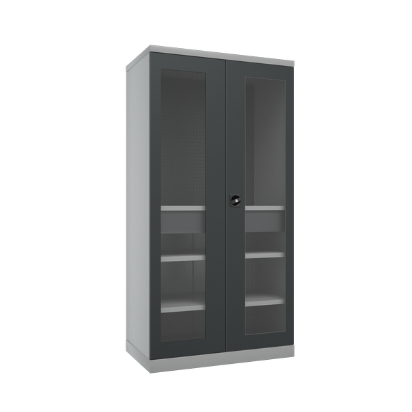 - Корпус шкафа окрашен порошковой краской серого цвета, обладающей стойкостью к коррозии (RAL 7038).