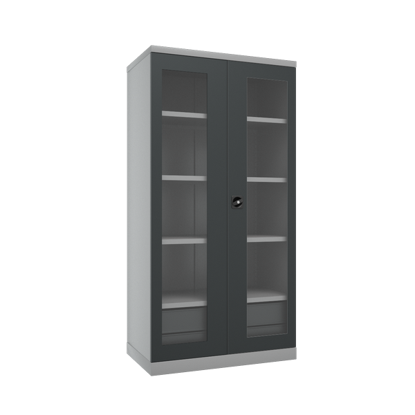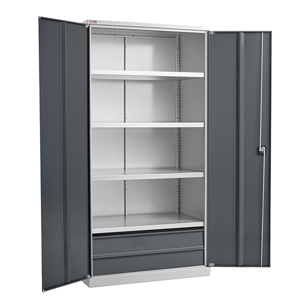 Шкаф укомплектован четырьмя полками и двумя ящиками.