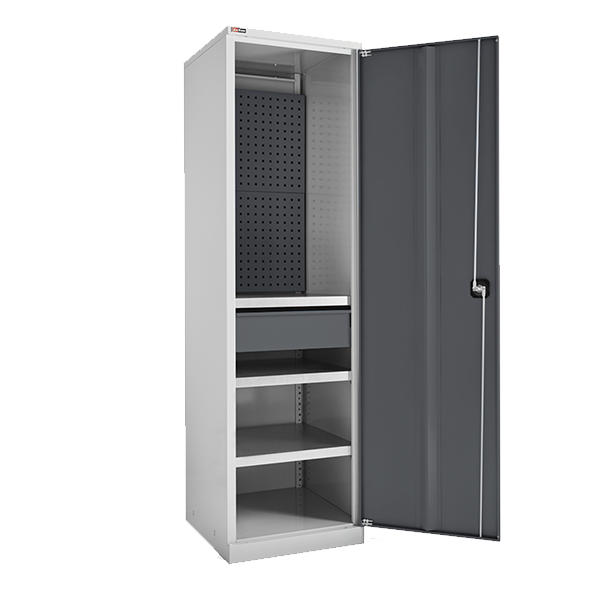 - Комплектуется тремя полками из оцинкованной стали, одним выдвижным ящиком, двумя перфорированными экранами.