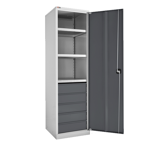 - Комплектация: две оцинкованные полки и пять выдвижных ящиков.
