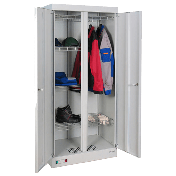 - Конструкция – одно отделение с двумя запираемыми дверцами (замки и ключи в комплекте); сетчатые полки для перчаток, обуви, шапок, мелких предметов одежды.