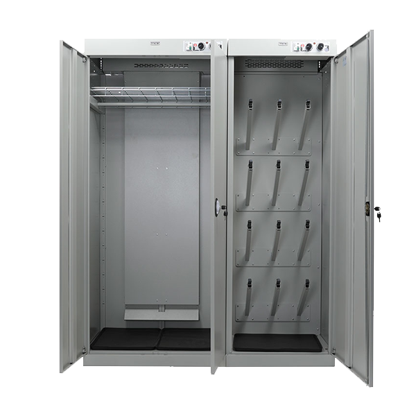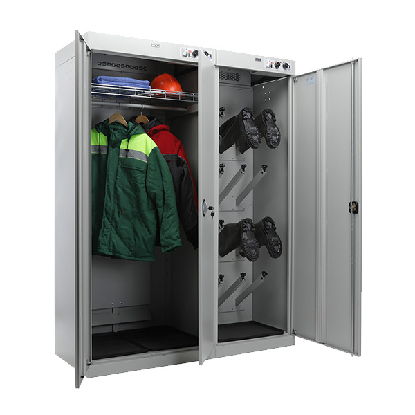 - Состоит из двухдверной секции для одежды и секции для обуви с 12 патрубками внутри.