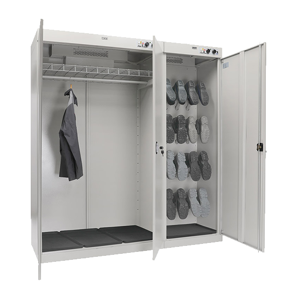 - Состоит из двухдверного отделения для одежды и отделения с 16 патрубками для сушки обуви.