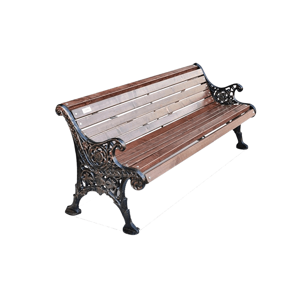 - Чугунные опоры и подлокотники скамейки окрашены порошковой краской в чёрный цвет с патинированием.