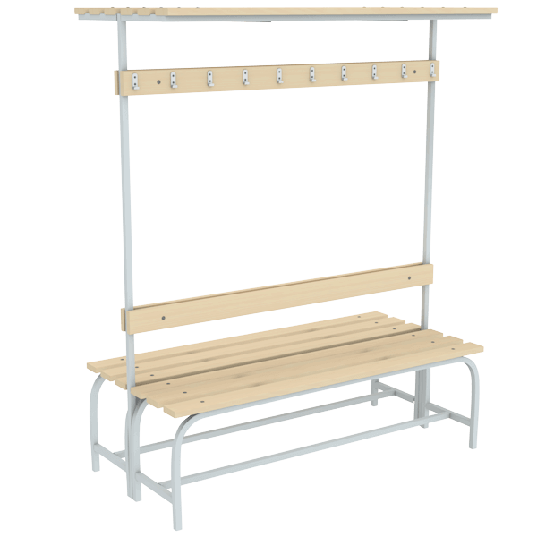 Скамья для спортивных раздевалок двухсторонняя с полкой для головного убора
